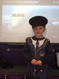 Kindergarten have been learning about ‘People Who Help Us’. They all dressed up as a pilot and took their friends on holiday! Hold onto your chairs for take off!